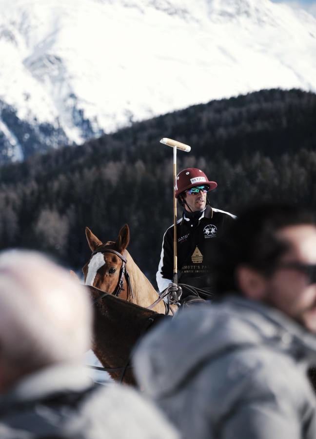 Shifting nervously from side to side on the frozen lake, it’s as if the horse even knows how ridiculous this all is. Hot breath curls out of his nostrils, his taped-up tail makes a vain attempt to swish through the Alpine air and his ears twitch at the cold blue sky. He’s poised; but chilly. And he is one of the eight polo ponies about to go hoof-to-hoof in the greatest show on ice.