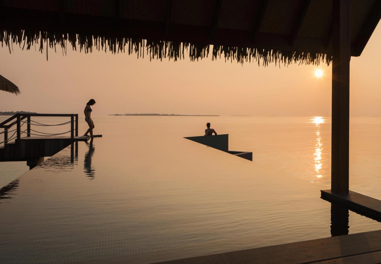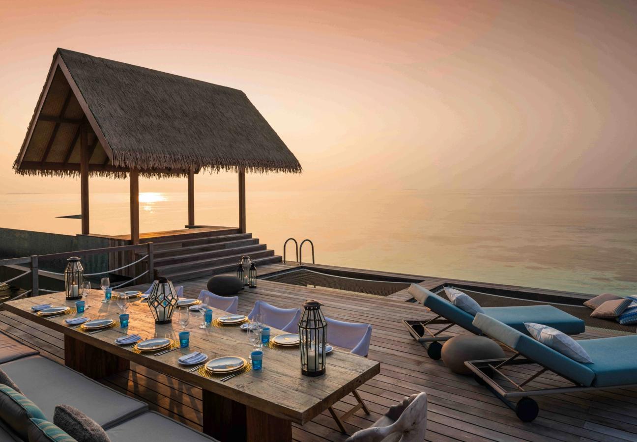 If you’d rather enjoy the tranquillity of the ocean from the shore, then simply lie back in an overwater hammock and let the lullaby of the lapping waves send you to sleep — or drink in the incomparable views from a panoramic mezzanine suite, cocktail in hand, as the sun goes down.