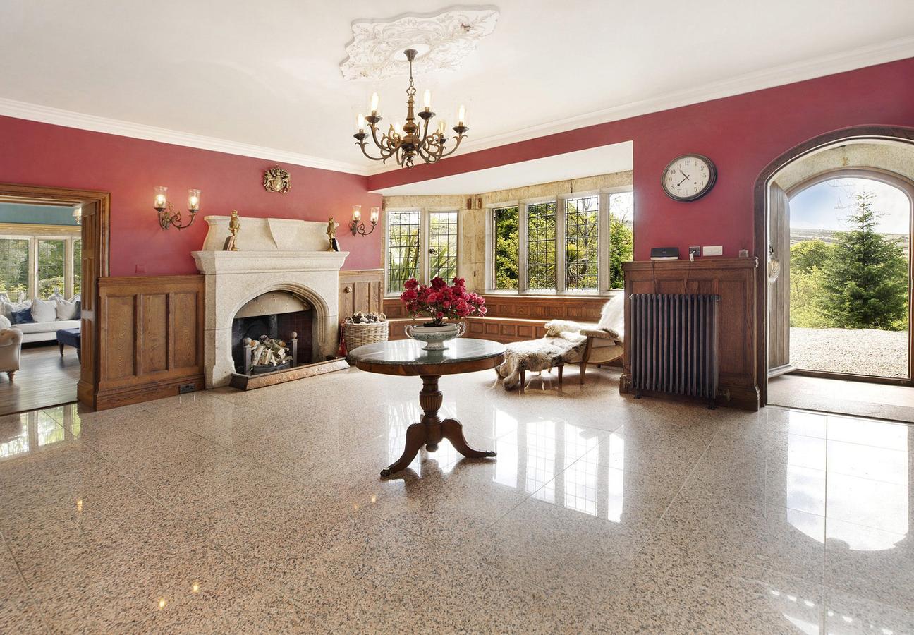 Inside the main house, expect everything from a lobby to a library, a drawing room to a dining room, a study to a sitting room. There’s also a reception hall and a drawing room — an excellent space for entertaining, finished with full panelling, wooden floors and a five pane stone mullion window.