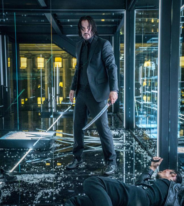 Mosca — who cameos in the second film as John Wick’s tailor, discussing and fitting the assassin with his in-world high-tech suit — also reveals that the suits may look black, but they’re actually very dark grey.