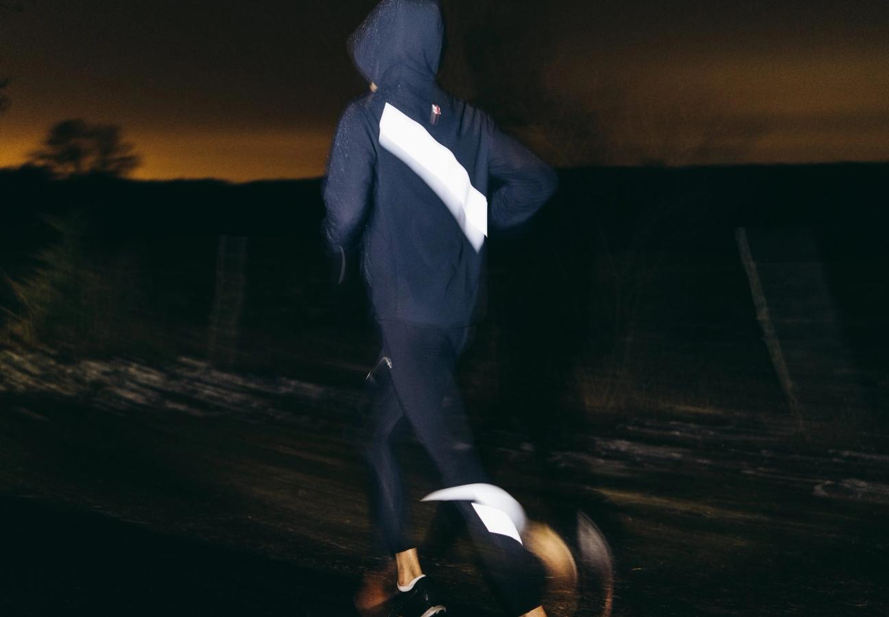With the drastic drop in temperatures, you’re probably wearing more workout gear anyway — which means that there are more reflective options to choose from. Your jacket (as important for insulation as it is for visibility) should come first. And it pays to invest.