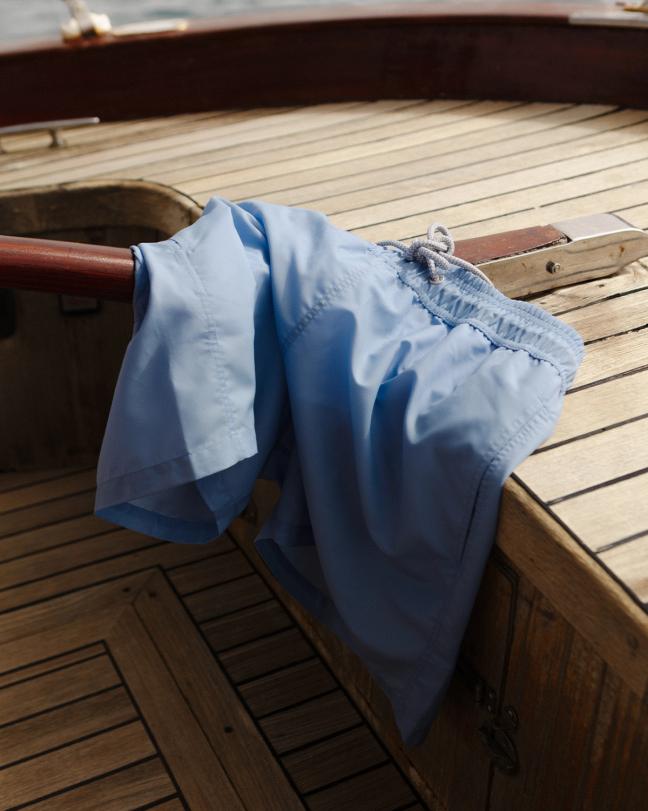 LOVE BRAND & CO Staniel swim shorts in blue, £130, lovebrand.com