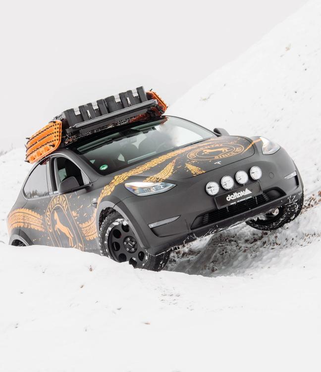Yet perhaps the biggest lesson to take away from this latest tuned-up take on the compact crossover is that, despite us being initially underwhelmed with the Model Y, with only a handful of accessories and add-ons (the lift kit costs €900, the headlights €900 and the roof rack €2,900) the £44,000 SUV can be transformed into an adventure-ready motor that could go toe-to-toe — or tyre-to-snow-chained-tyre — with the bulkiest, best electric SUVs on the slopes.