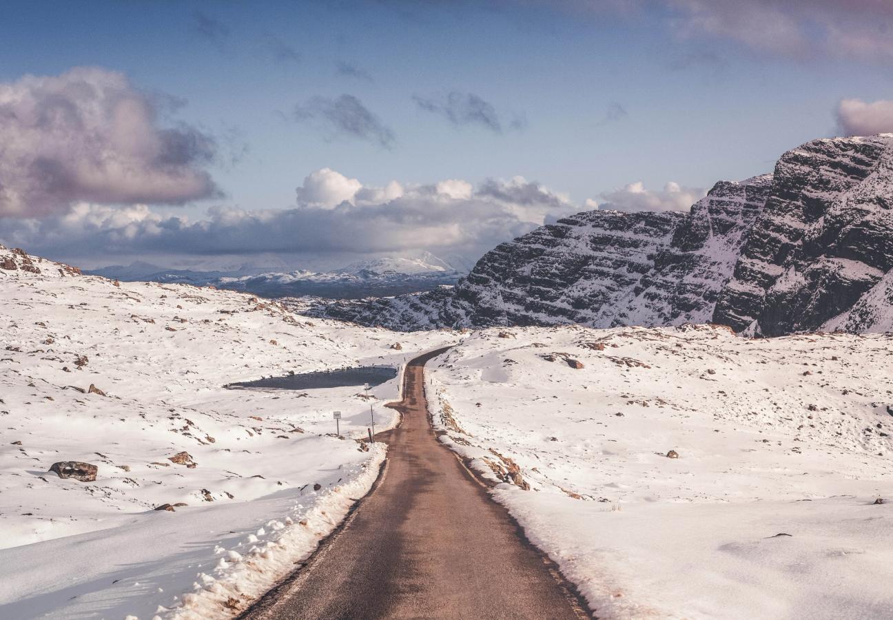Although our snowfalls may be few and far between, there’s nothing like a traipse in freshly-fallen powder to really wake you up. So, next time the snow drifts down from the sky, make for the highest point you know — such as the above in Strathcarron — for a white-out trek.