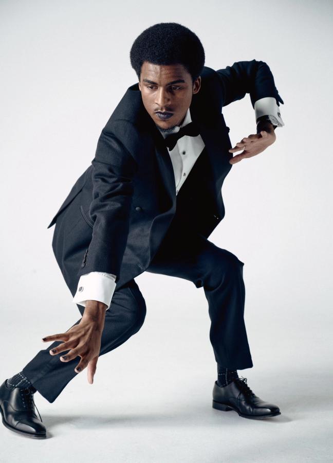 Xhosa Cole has got moves. Serious moves. Such moves, in fact, that the set stood still during this shoot. We all just watched — enraptured and enchanted — as this sharp-suited saxophonist, this 25-year-old bandleader, this engaging enigma of a musician, bent and leant himself into impossible, beautiful positions. It was improvisation without an instrument; seriously spellbinding stuff.