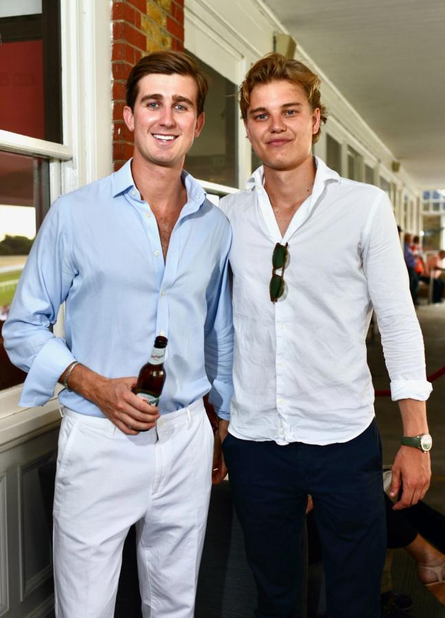 Nowadays, that beloved spot is occupied by a happy annexe of the Fitzdares Club, with all the kilim wallpaper, Pol Roger and miniature croque monsieurs that one might hope for. And we’ve always been huge fans of the Fitzdares Club, you see. So last night Gentleman’s Journal invited a few old friends along to enjoy the heatwave, the racing action, the unique charm of the setting (the best way to enter, of course, is on a dreamy boat ride along the verdant river that winds from the Castle itself) — not to mention the Queen Mother’s private loo. Guests included Max and Chloe Chilton, David Tollemache, Georgia Toffolo, Charlie Barron, Archie Rutland, Max Dodd-Noble, Alex Heerema, Tom Lorimer, Richard Dinan, Dominic and Ophelia Hibbert, Ollie Horsnall, and Annabel and Will Woodhams (naturally). All in all, riotous fun.