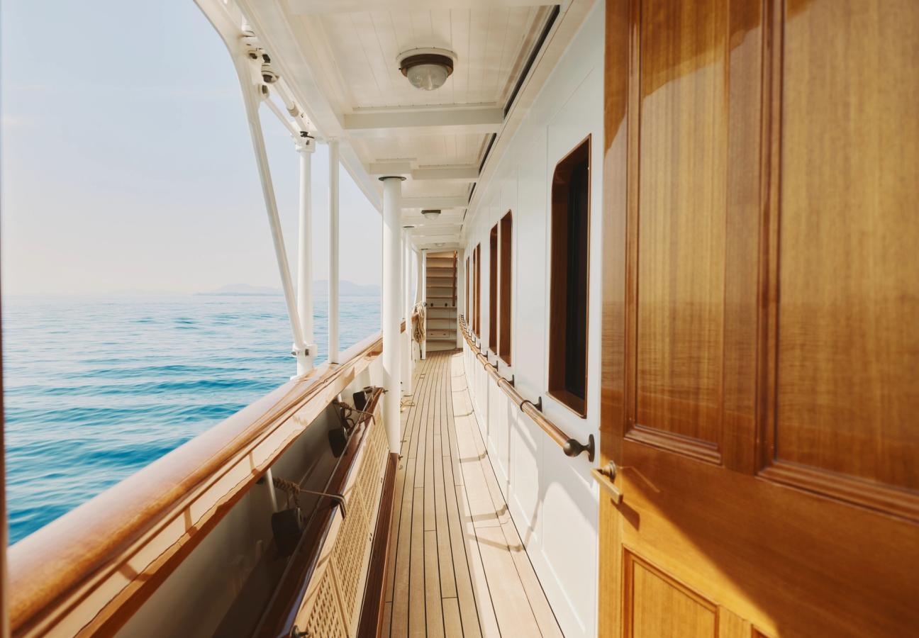 After she was sold in 2012 for €550,000, there was only one shipyard with the pedigree to faithfully restore Malahne, and the mammoth 30-month task fell to Cornish specialists Pendennis, under the guidance of Edmiston, with a new, passionate owner who bravely saw the costly project through. The first job was the “structural exorcism,” as Boat International called it at the time, which saw the Sheik’s superstructure removed.