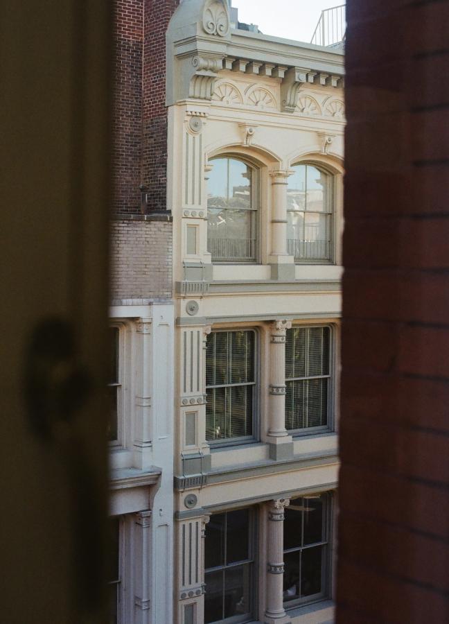 Inside, the room is illuminated airily by a pair of ceiling-height French double doors, which overlook a pleasingly downtown view of iron fire escapes and art-deco cornices. The furnishings are handsome, sophisticated, understated. Whites and pale tones, with warmth and softness donated by glowing amber lamp shades and the sheer luxuriousness of the linens. The bathtub is ludicrously capacious.