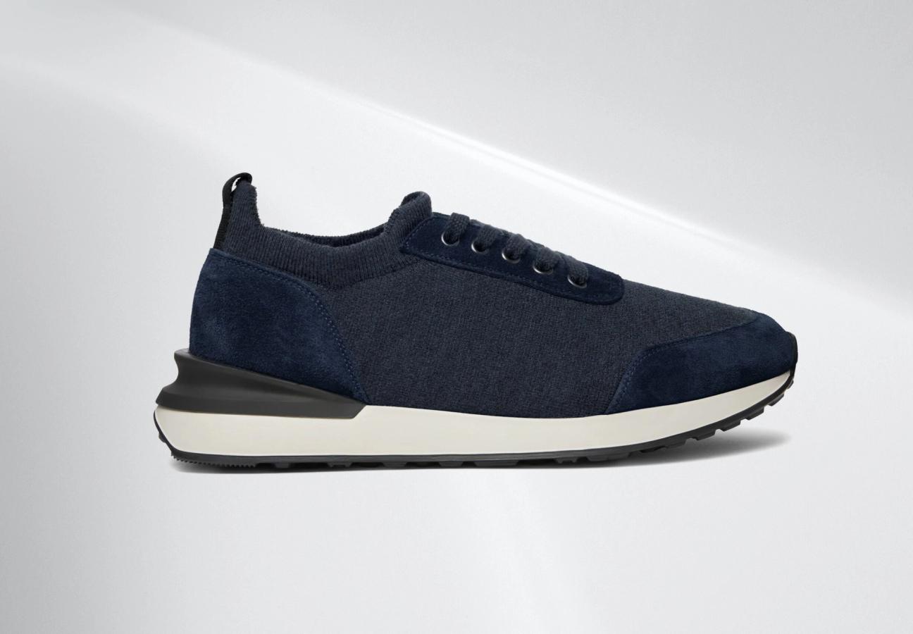 But suede shouldn’t have all the high-stepping fun. Another alternative material to lace up this spring is wool — and nobody knits it better than Harrys London. The British brand’s ‘Mallory’ sneakers have reinforced knit uppers, with barely-there suede trims — in an almost velveteen shade of navy.