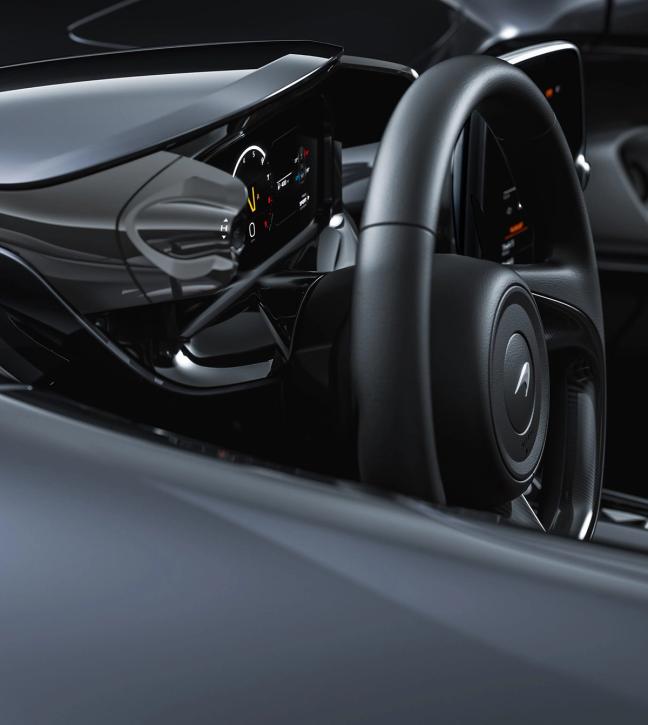 But what’s that? No windscreen? That’s right. In another of the Elva’s pioneering moves, McLaren has done away with a windscreen altogether. Instead, the Active Air Management System (AAMS), channels air through the nose of the Elva, before being directed up over the cockpit to create a ‘bubble’ of calm for driver and passenger. It sounds too good to be true, but McLaren guarantees it works — using a network of transverse and longitudinally mounted carbon fibre vanes across the bonnet to keep your hair unruffled.