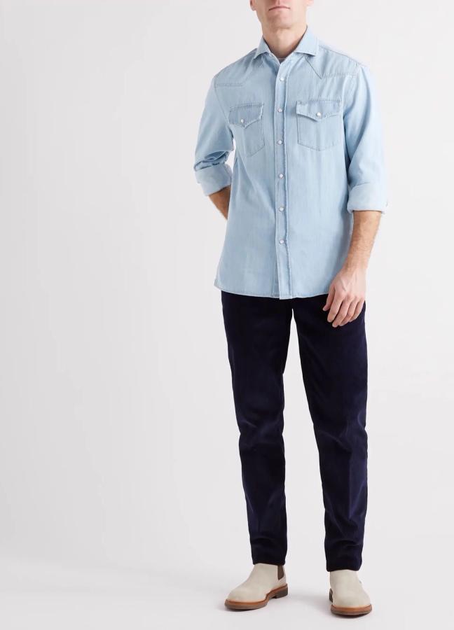The most spring-like of the springtime colours, these blooming, blossoming months are the ideal time to go green with your get-ups. But, rather than opting for a darker, more forest-forward shade of the colour, we’d recommend keeping things pale. Like the washed denim above, it’ll add a sprightly brightness that’s becoming of the fresh weather outside. Stick to olives, sages and pistachios — and you won’t go far wrong.