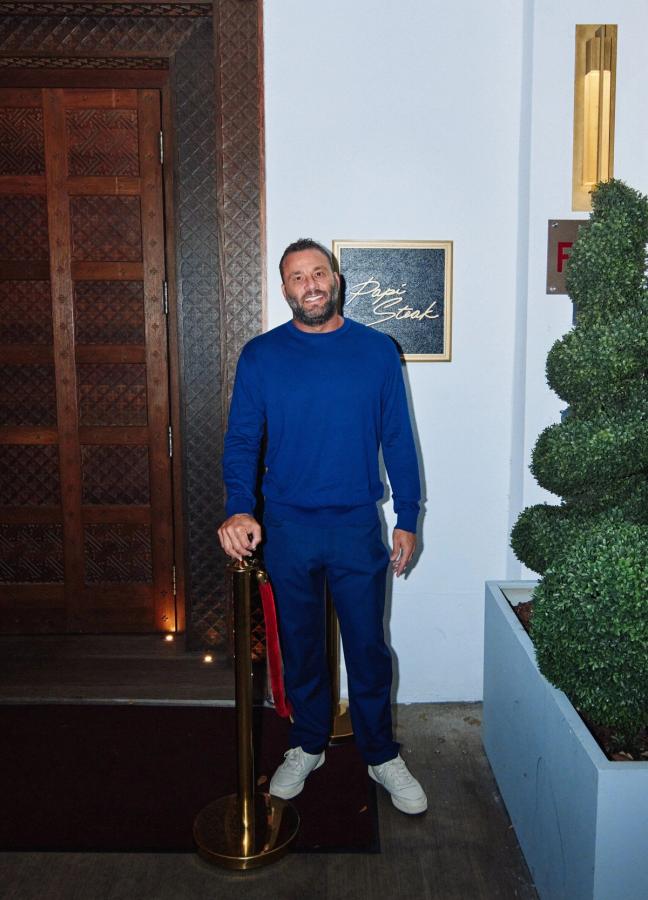 “I’m fully offended when somebody comes here and they don’t eat at one of my places. I take it really bad. Milos has an open window — an amazing restaurant. Normally you wouldn’t fault someone for going to Milos. But it’s right next to Papi Steak. And if I see one of my friends eating there, I go like this — I take my finger and I cut my neck. And now everyone knows not to sit by the window…”