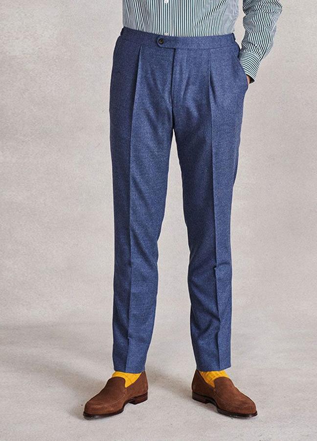 These mid-blue trousers from British fashion bastion New & Lingwood may look dashing and delicate; but the crisply creased sports flannel trousers features a nano-coating that repels water, oil and dirt. That means they’re ideal for the work-from-home arena — hardy, handsome and exceedingly capable.