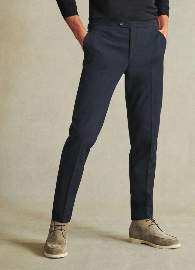 They’d look good with boat shoes, wouldn’t they? And that’s because Hemingsworth — a brand with an anchor for its logo — has made plain-sailing of summer dressing. Tailored slim, with double mother-of-pearl buttons and a highly innovative six-piece adjustable waistband, these maritime blue trousers are ideal for a coastal escape.