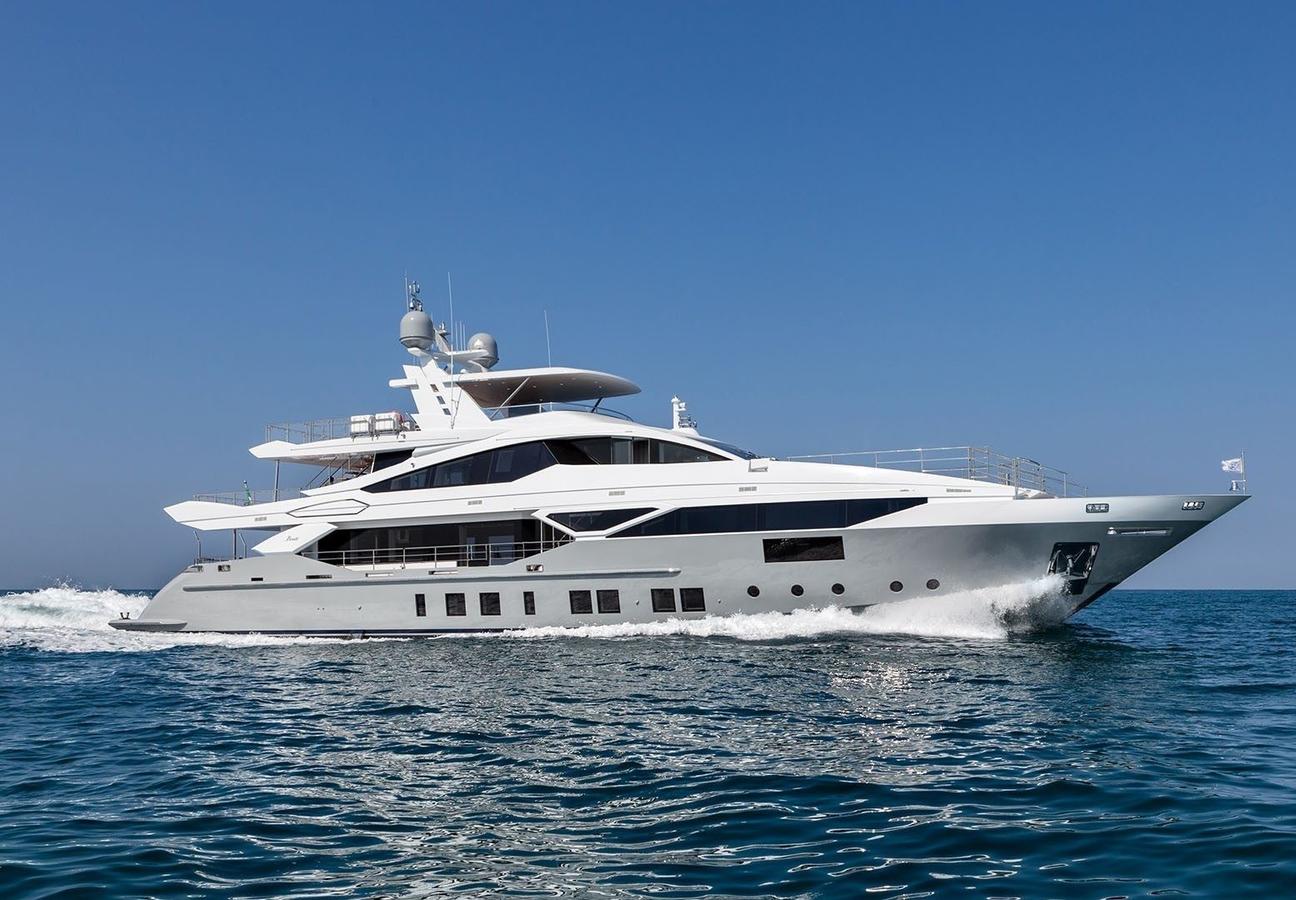 With an audacious statement in luxury and style, this is one of the funnest yachts on the water. She makes a splash with its elegantly plush interiors, floor to ceiling windows offering panoramic views as you cruise, a plunge pool complete with Jacuzzi-style jets, and an incredible array of the most contemporary water toys.