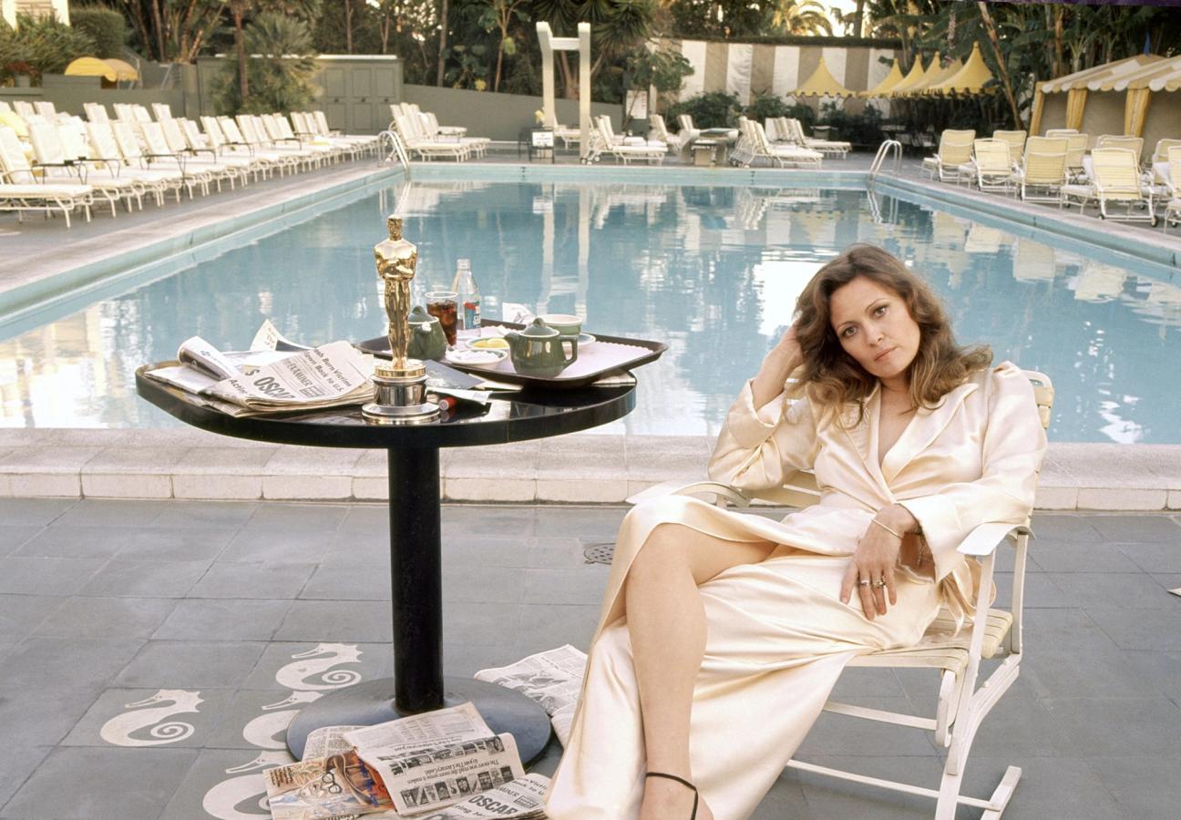 O’Neill explained the idea to Dunaway, and suggested that she meet him by the pool at the Beverly Hills Hotel — where she was staying — at dawn, with her Oscar. “I knew the guy who worked the pool. I asked him to let us in for a few minutes and then arranged the papers and the breakfast tray. I had it all set when she suddenly appeared, in her dressing gown, Oscar in hand. The photo was just us. There were no stylists or PR, no lighting or assistants. And it only took a few moments.”