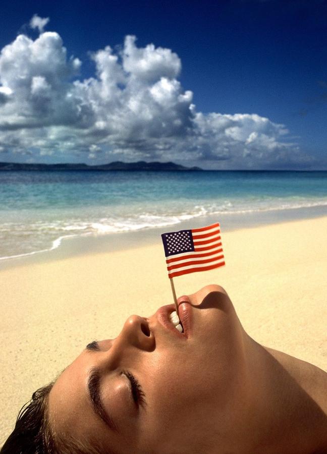 Albert Watson, ‘Cindy Crawford with Flag, U.S Virgin Islands, 1993’