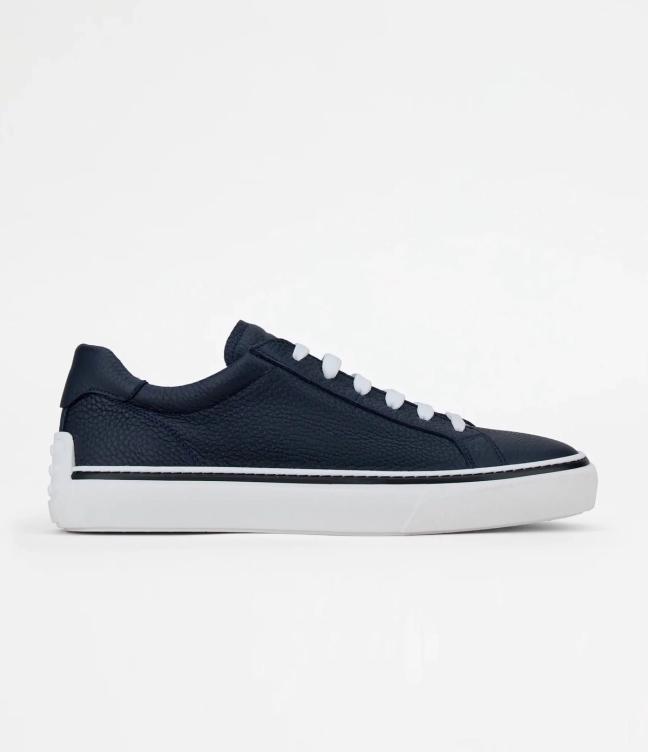 The Tod’s blue leather sneakers are crafted from sophisticated hammered leather — with plenty of rubber detailing on the heel, a stamped Tod’s logo on the tongue and handsome contrast trim.