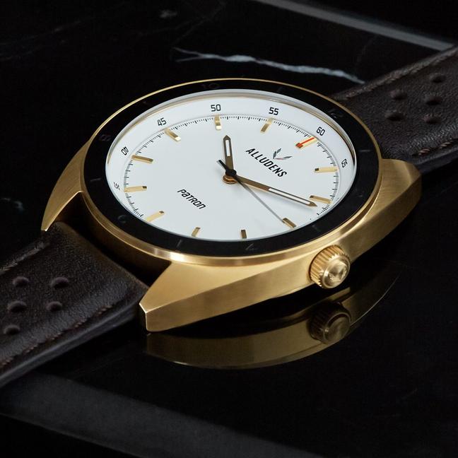 The Patron by London-based Alludens takes its design cues from an era when a watch was as essential as a saddle on race day; a time when retro sporting style was essential amongst the Peloton.