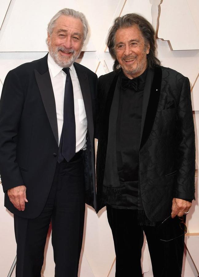 They weren’t going to disappoint, were they? De Niro and Pacino, the elder statesmen of mob movies, kept things classic. De Niro suited up in monochrome and Pacino wore some suede slippers along with a subtle jacquard black jacket.