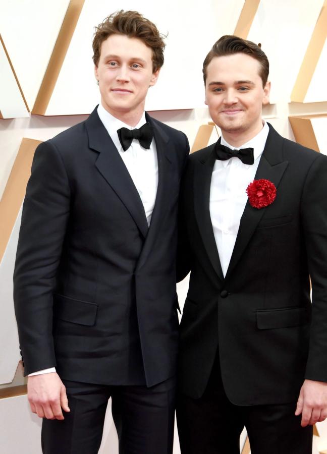 The men of the moment may have not seen 1917 scoop up as many awards as it did at the BAFTAs, but George Mackay and Dean-Charles Chapman sure looked the part. Mackay, in Dunhill, also got the asymmetrical note, while Chapman’s red carnation is his own nod to DiCaprio’s old-school glamour.