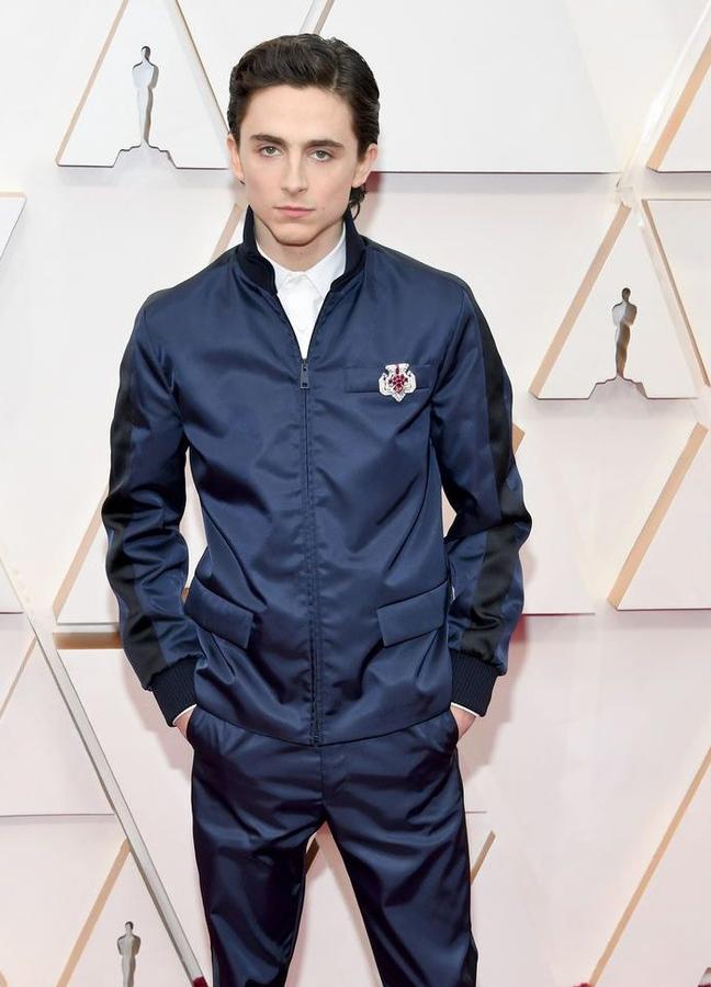 The sartorial gift that keeps on giving, Timothée Chalamet wore a navy zip-up tracksuit by Prada over a white polo neck for the Oscars. Dressing down, however, it was not. That brooch you see? It’s white gold, ruby, diamond and platinum — and Cartier.