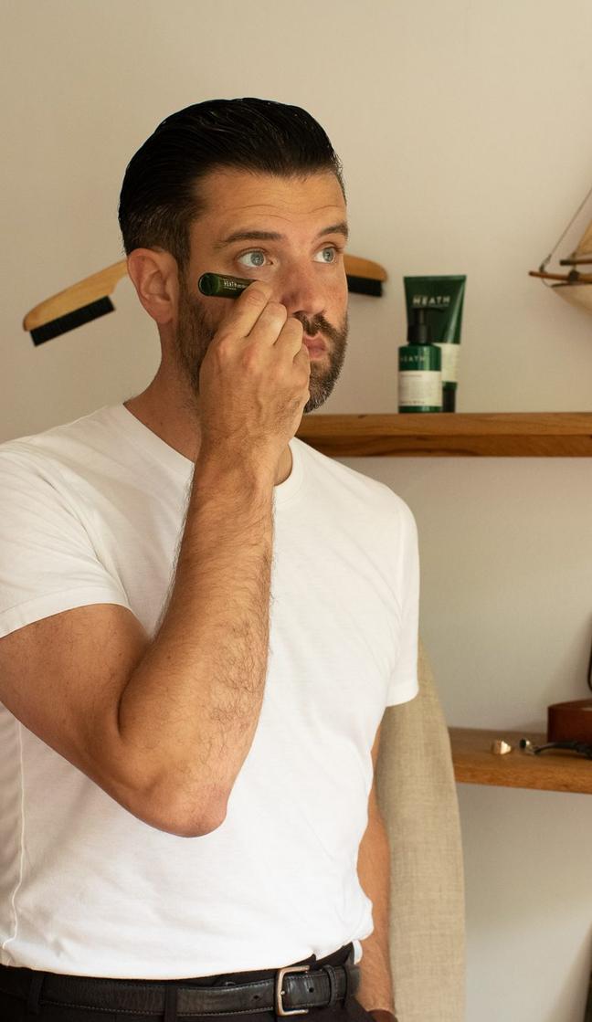 Weeks when filming can mean very long hours — sometimes up to 15-hour days. But, if I can, I’ll try to play football on a Thursday. I have played 6-a-side football, followed by a few pints, in Brixton for 13 years — for Brixton and Hove Albion. It honestly helps me relax and has been great for both my physical and mental health. I’ve also got many of them using Heath products. I know my good friend Phil now swears by the eye serum! So a good game, a catch up with friends and a long wind-down shower all helps me to relax.