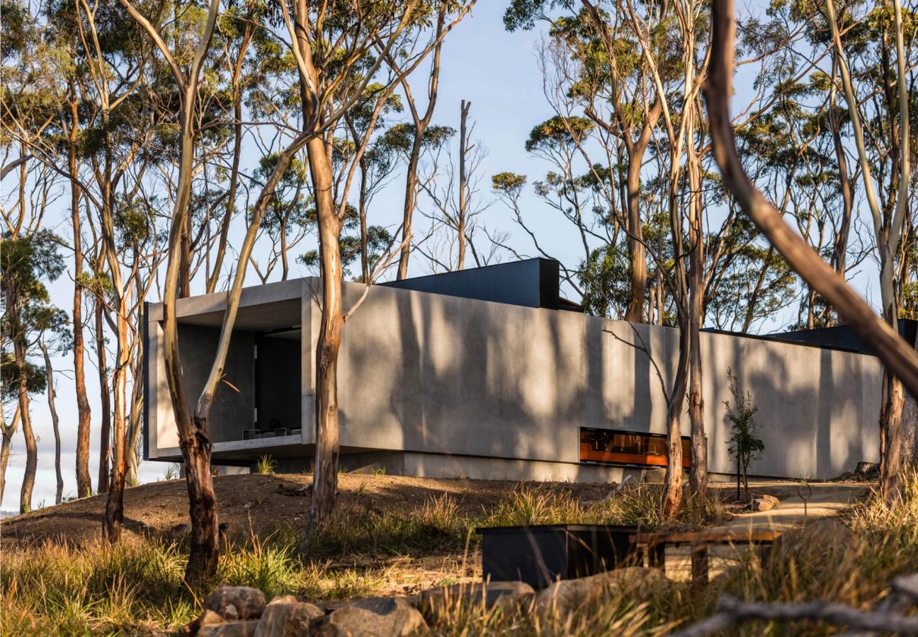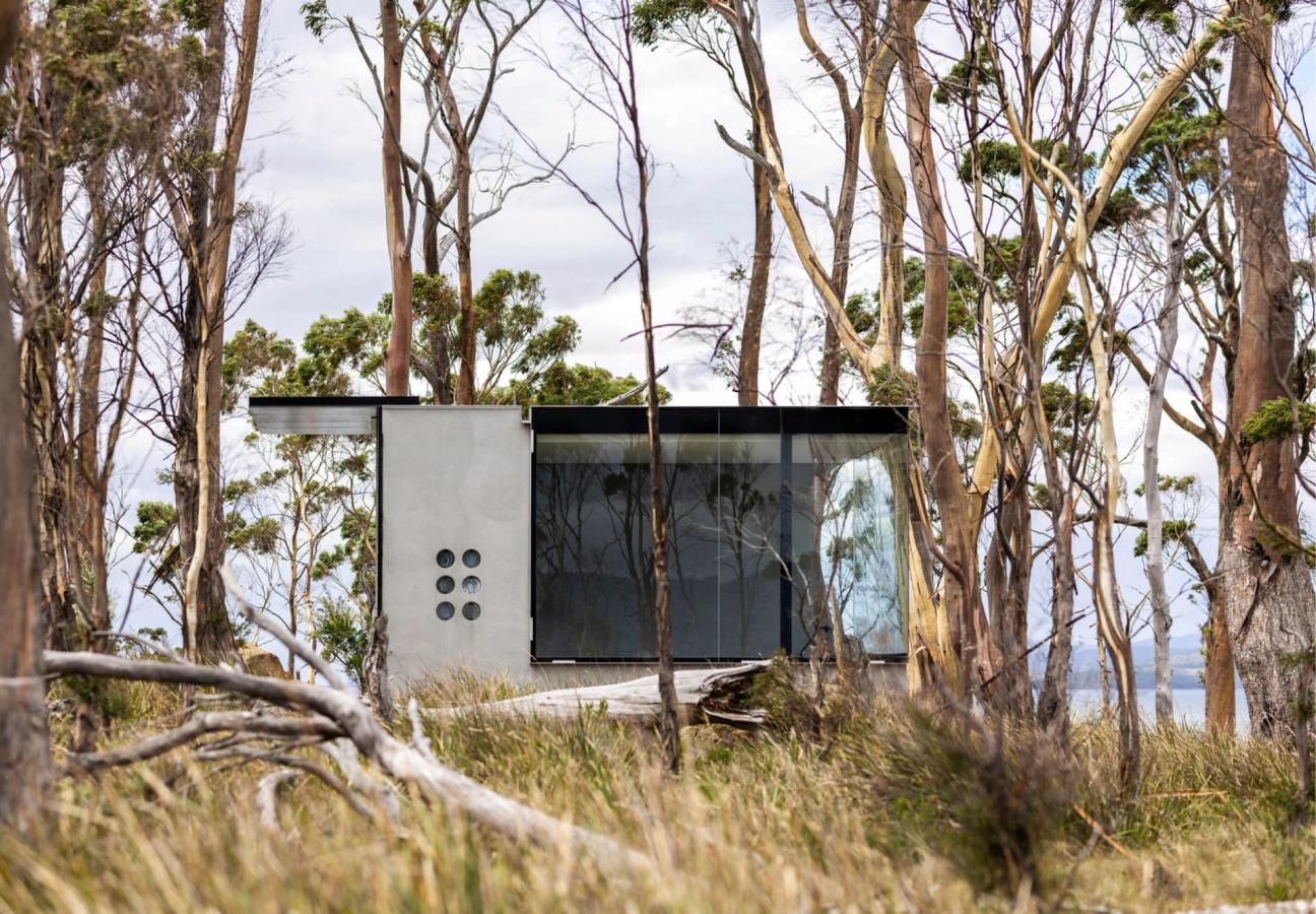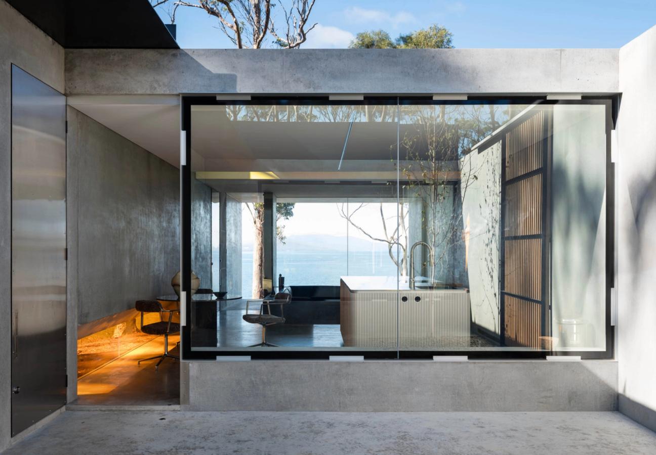 Vipp began life as the maker of a pedal bin, an item that has now become a design icon within creative circles. Since the introduction of this household item – which is still beloved for its robust build and ease of use – in 1939, the Danish company has blossomed into a sleek lifestyle brand, known for its functional, for-life homeware. To showcase the ergonomic virtues of its pieces, the label has opened up various guest houses across the continents, each of which is kitted out with Vipp products, kitchen units and furniture. There’s a cabin in the Swedish forest, and a villa in Italy – and its latest instalment is Vipp Tunnel, a brutalist shell that’s sat on a sloping hill in Bruny Island, Tasmania.