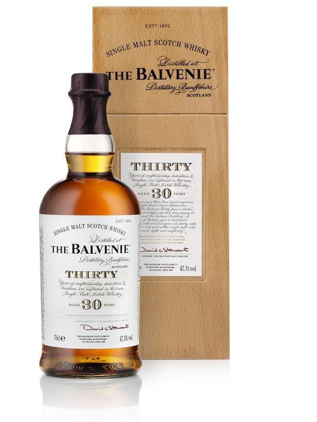 The Balvenie Thirty rolls across the palette with a dark chocolate and sticky marzipan flavour. On the nose, it has tones of honey, oak and orange peel. The finish is the highlight, with an exceptional smoothness and lingering sweetness. Definitely one for the cabinet. thebalvenie.com