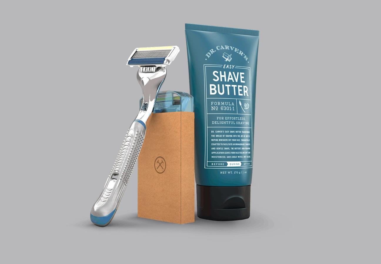 Open your Dollar Shave Club box — we opted for the ‘Classic Shave Starter Set’ — and you’ll get a 6-blade executive razor and four replacement cartridges, alongside a tube of the brand’s own shaving cream alternative, Dr Carver’s Easy Shave Butter.