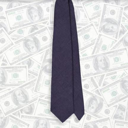 Of course, there are rules. Pulling on any old necktie won’t make you look like an instant professional. Instead, allow us to make some suggestions. Firstly, no bows — that goes without saying. Go for a mid-width 6.5cm tie in a block colour, and in a material that won’t come off too shiny. Try Drake’s linen offering or a silk-cotton blend from Hackett. Alternatively, if you really want to try a pattern, Gieves & Hawkes do a mean British repp stripe.