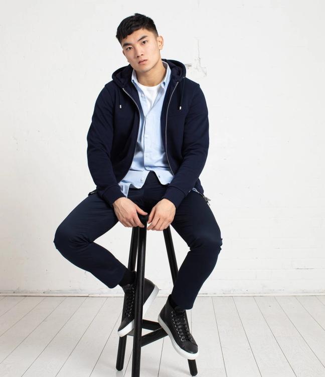 Warm, easygoing and an item that’s a contemporary layering basic, hoodies make for a sporty and casual addition to your daily rotation. L’Estrange gives an elevated, jacket-like spin to the streetwear classic by combining the soft touch of cotton with a fully-lined interior, pique-textured exterior, inside pockets, and high-shine metal-zip detailings.