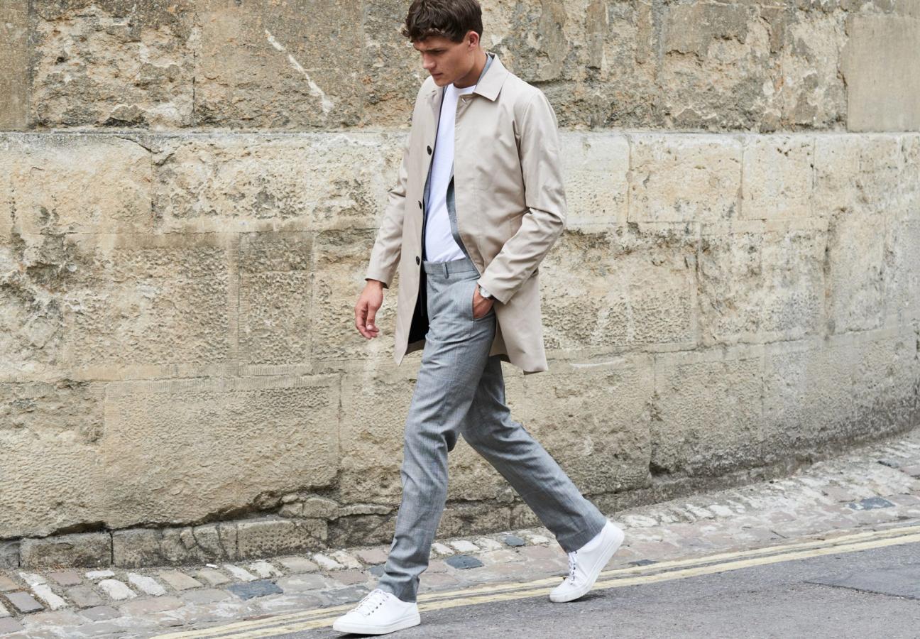 Tailored trousers and workwear inspired jacket are an ever-reliable combination for this time of year. Now it’s up to you… keep it classy and smart with a shirt and derby shoes, or go smart casual as we’ve done here with spotless trainers, and a fresh white tee.