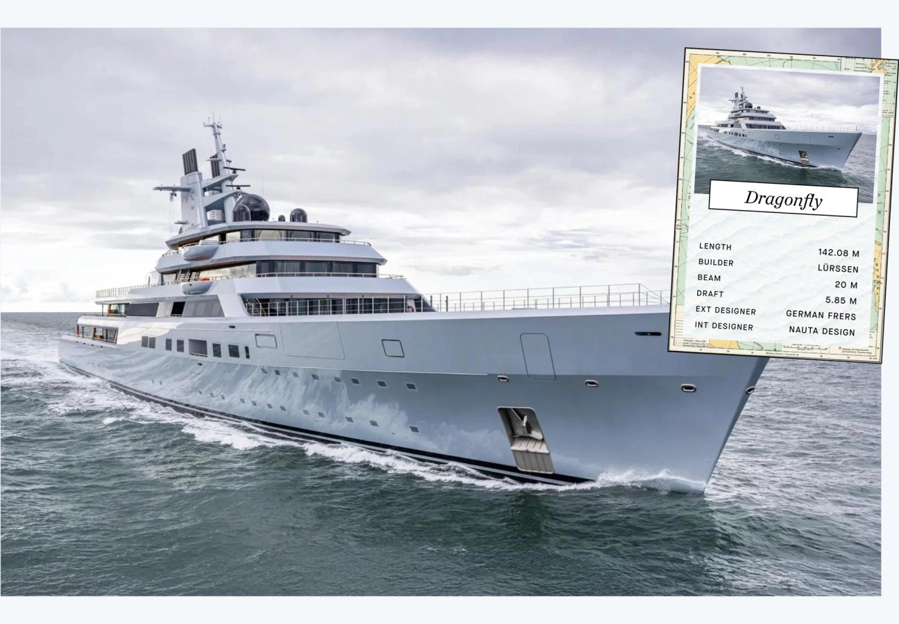 Google co-founder Sergey Brin is widely reported to be the owner of the superyacht Dragonfly. This 142-meter Lurssen-built yacht was launched in 2024 and is part of a larger collection of vessels known as the "Fly Fleet”, yes Sergey has a full fleet. She was designed by Germán Frers and Nauta Design and the yacht features 2,000 square meters of interior living space and 1,000 square meters of exterior social areas.