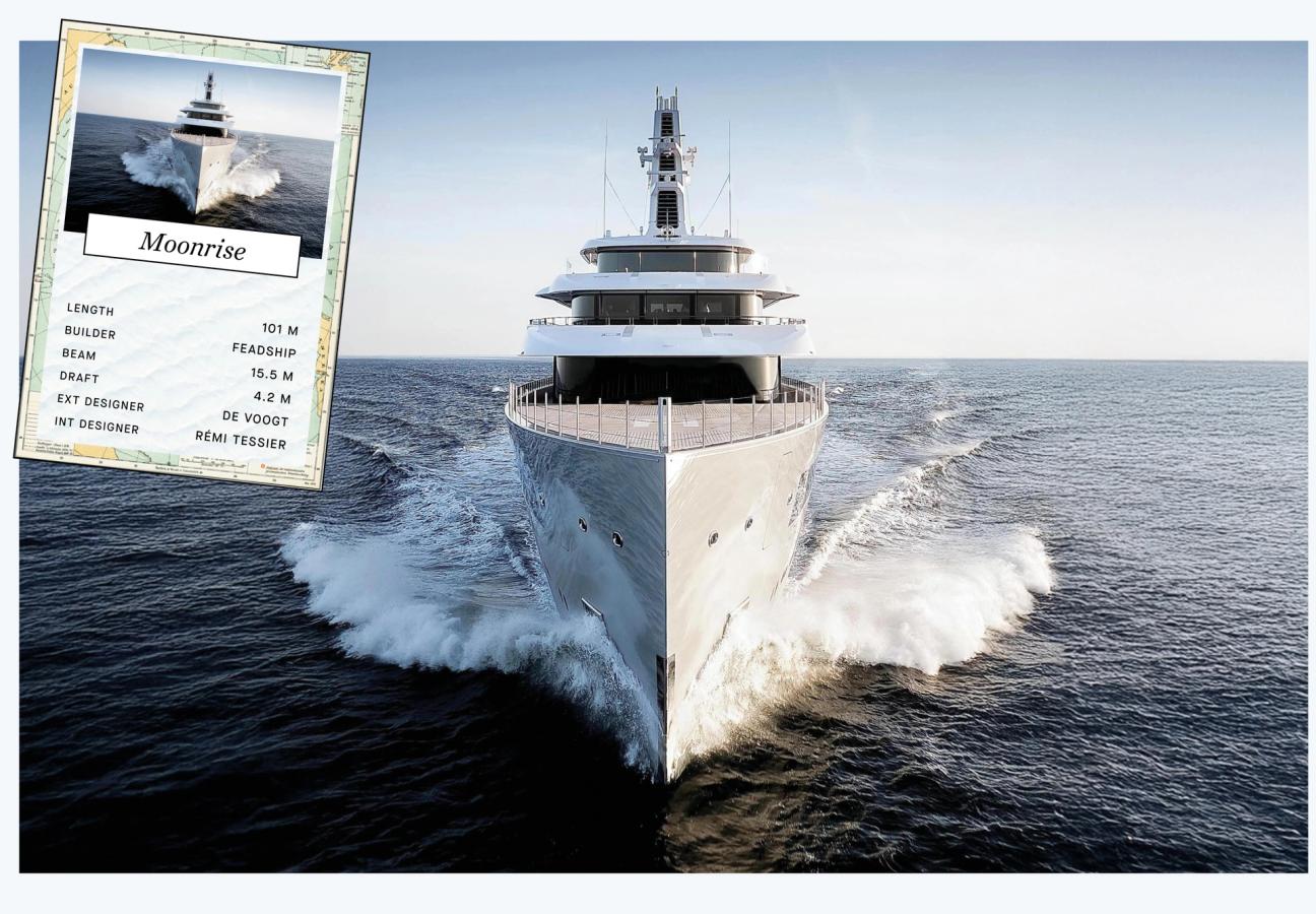The 101m mega yacht MOONRISE (ex Project 1013) was launched at Feadship in 2025. Designed by De Voogt Naval Architects boating sleek exterior lines. The 2025 motor yacht MOONRISE, was built by the esteemed Dutch shipyard Feadship and is currently largest superyacht by waterline length ever built in the Netherlands. The owner of the superyacht Moonrise is Jan Koum, the co-founder of WhatsApp. He also currently owns a 99-meter Feadship yacht built in 2020. Yes, one is never enough.
