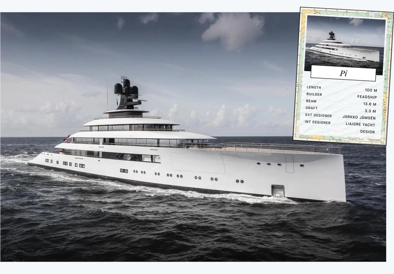 The Pi yacht is built by Feadship in 2025 and was designed by Jarkko Jämsén – Aivan, a top Finnish designer. The superyacht has a massive volume of 2.985 tons. The yacht’s owner is Howard Schultz. Howard Schultz is an American businessman, who is best known as the former CEO and chairman of Starbucks Corporation. The Pi yacht’s features include an open fireplace and a large oval-shaped swimming pool. The yacht also features a large spa and an elevator, making it easy to move between the different decks of the yacht. That’s a whole lot of coffee.