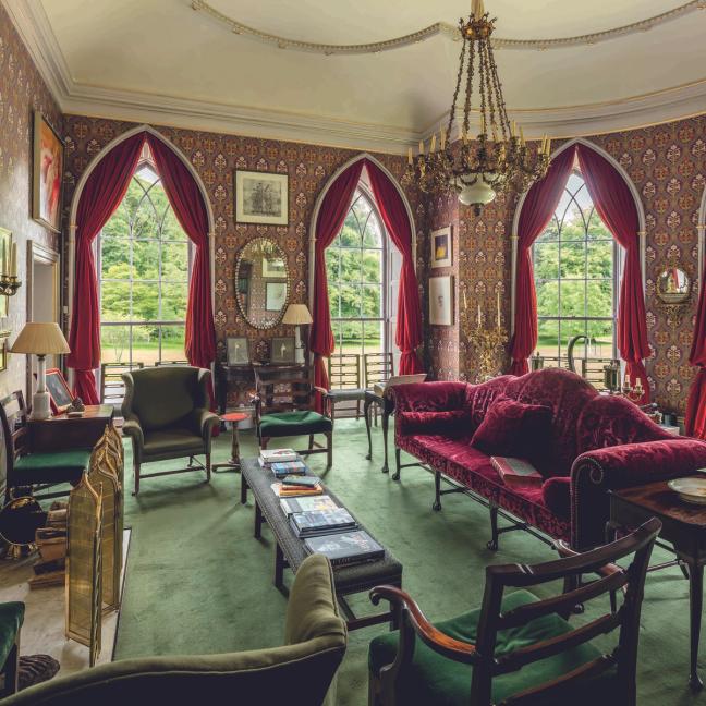 The house boasts all the trappings of a grand castle, but on a miniature scale, and guarantees picture-perfect festive scenes, complete with grazing deer, with principal rooms looking across a sweeping lawn towards a beautiful private lough.