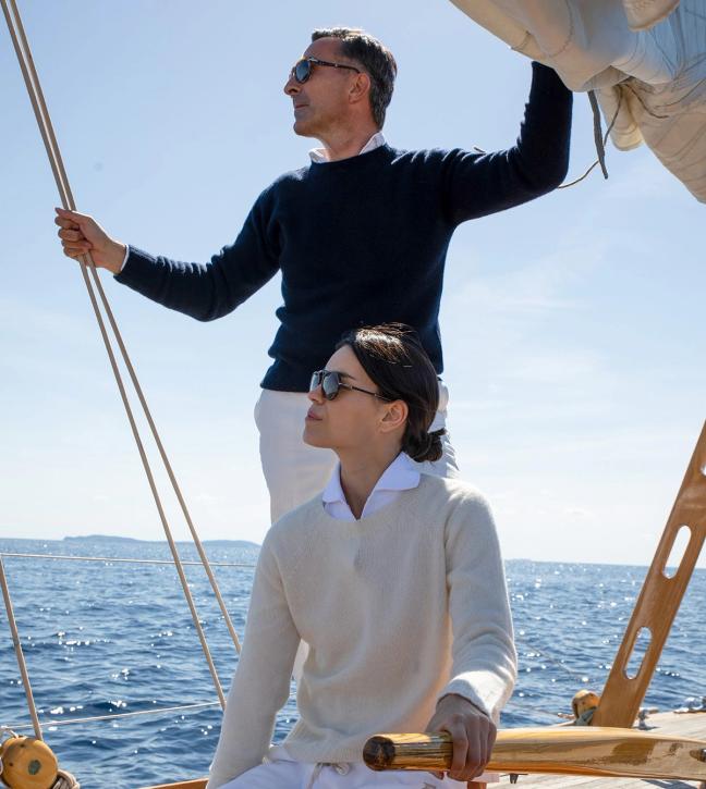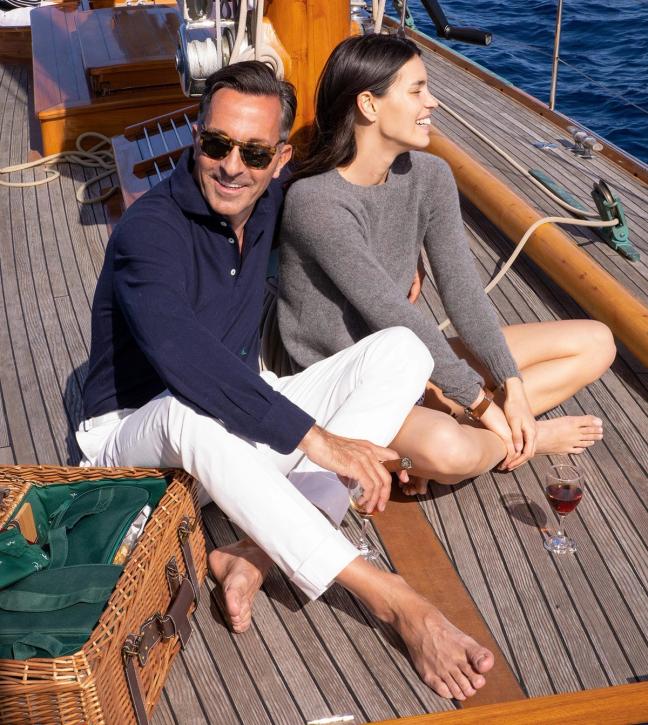 “This is all about the right material and the appropriate weight. Obviously, you don’t want to wear a chunky lambswool sweater or a heavy cashmere roll-neck on the Riviera, but a light cashmere sweater can come in very handy on chilly mornings and/or evenings — and always adds a nice touch to any outfit.