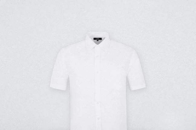 Either wear a long-sleeved (preferably double-cuffed) shirt with the sleeves rolled up (which is by far the most elegant look), or wear a slim-fit polo shirt. Short-sleeved shirts (probably with pencils or cigarettes sticking out of the breast pocket) should be the exclusive domain of used-car salesmen or mad scientists.