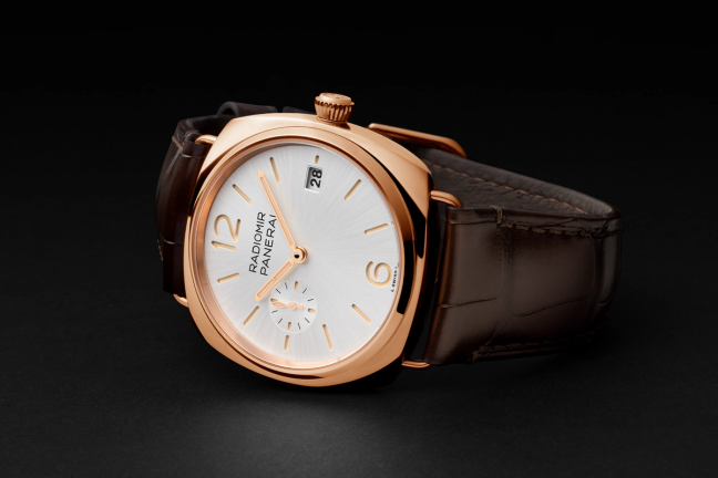 Initially commissioned by the Royal Italian Navy, Guido Panerai’s Radiomir – a radium-based substance that illuminates in the dark – was patented in 1916, and the first Panerai Radiomir watch became a legendary divers watch in the 1940s, worn exclusively by the military until the 1990s. Launched earlier this year, the Radiomir Quaranta is the contemporary interpretation of Panerai’s first-ever watch. Meaning ‘40’ in Italian – to denote the 40mm case size, a reduction of the 47mm original Radiomir case – it is set in a polished GoldtechTM case, a new gold material combining platinum and copper that gives an intense red appearance. This is matched with a white sun-brushed dial and a matt-brown alligator strap.