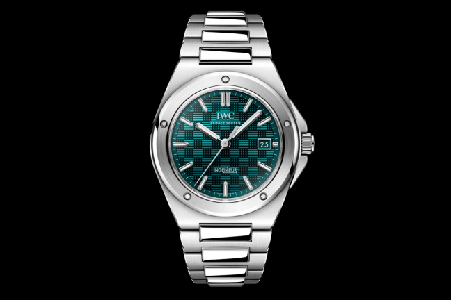 In the 1970s, IWC Schaffhausen commissioned renowned Geneva watch designer Gérald Genta to redesign the Ingenieur (meaning ‘engineer’ in German and French), a timepiece introduced in 1955. Launched in 1976, Genta’s remodelled Ingenieur featured a screw-on bezel with five recesses, a dial with a unique pattern and an integrated H-link bracelet. Earlier this year, IWC released a newly engineered automatic version of the Ingenieur Automatic 40, reflecting the bold aesthetic codes of Gérald Genta’s Ingenieur SL Reference 1832, while meeting the highest standards of modern ergonomics, finishing and technology. Powered by the IWC manufactured 32111 calibre with an automatic pawl-winding system and a power reserve of 120 hours, the collection includes three models in stainless steel and one in titanium, with ref IW328903 in steel featuring a particularly striking aqua-coloured dial.