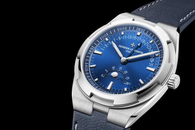 Founded in 1755 and in continuous production ever since, Vacheron Constantin is the world’s oldest watch manufacturer. In 2016, the house made its Overseas watch the symbol of sporty-chic watch-making. New for 2023, the Overseas line now incorporates a retrograde display and a high-precision moon phase for the first time. At the heart of the Overseas Moon Phase Retrograde Date beats the in-house calibre 2460 R31L/2, while the blue-lacquered dial features a play on light, thanks to the velvet finish flange and sunburst satin-brushed centre.