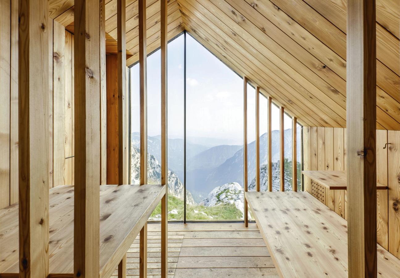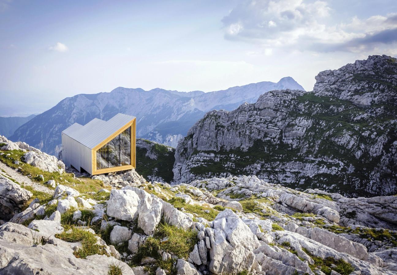 You can find this sleek bivouac (storm shelter) on the tallest mountain in Slovenia, with its sharp roof designed to reflect the Alpine peaks surrounding it.