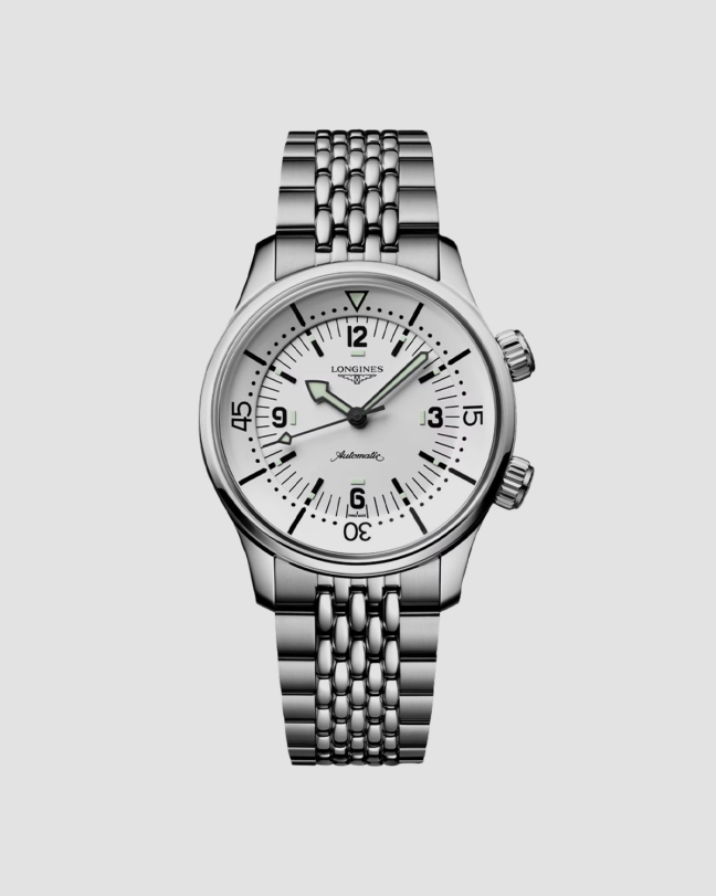 The Fifty Fathoms Automatique — now in polished steel — set the stage for what we know as the modern Scuba diver’s watch, mostly down to its unidirectional rotating bezel. Unidirectional in the ‘anticlockwise’ sense, so a passing glance against a reef doesn’t nudge it the other way and give you the sense that there’s more oxygen in your breathing tank than planned for.