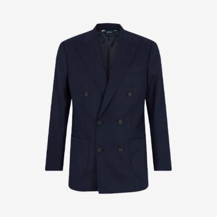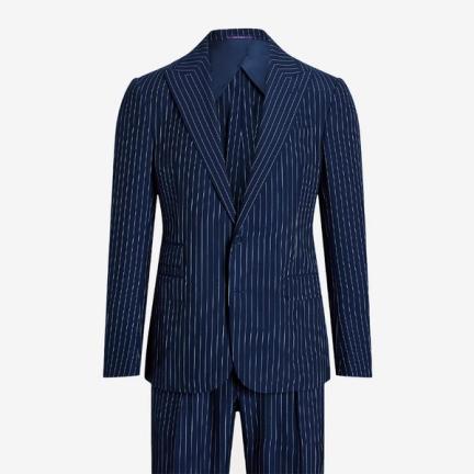 Because the short, which films three pages from an unshot Alfred Hitchcock script, is designed and staged in the style of late 1950s films, including The Man Who Knew Too Much and North By Northwest. And, rather than relying on mafioso-style shoulder pads or period costumes, Baker is dressed in a simplistic way that emulates Cary Grant’s famous lightweight blue-grey worsted wool suit. Neatly tailored, it’s an enduring look. Transformative; timeless.