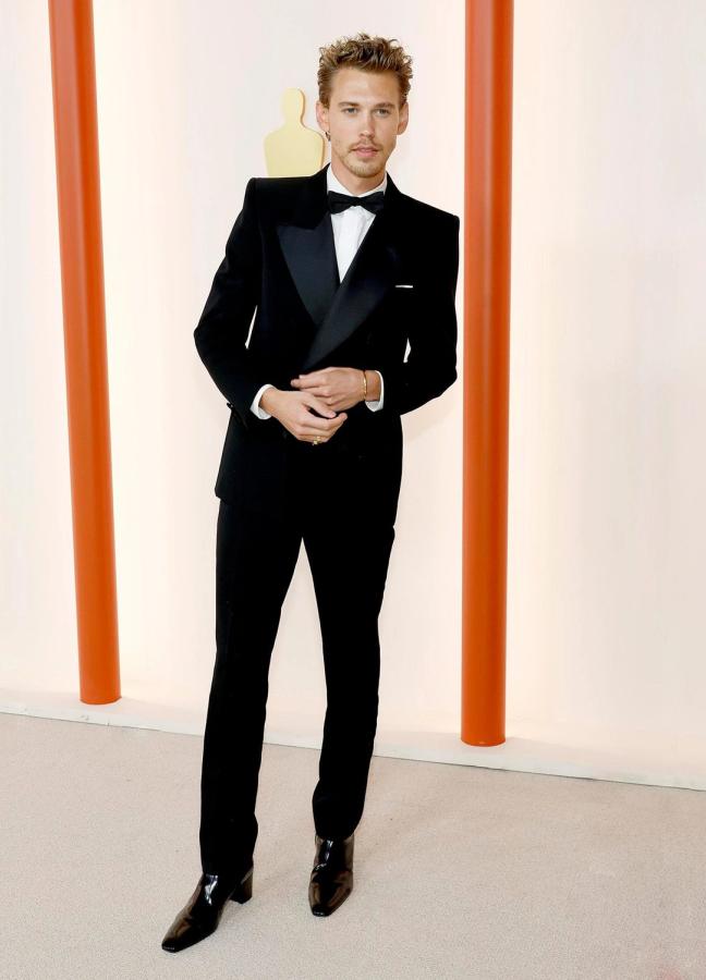 Following his career-booting role in Elvis, Austin Butler turned up to last night’s event as a Best Actor nominee. Though his final scenes in the film saw him weighed under prosthetics, the 31-year-old’s red-carpet look showcased his slim build in Saint Laurent, a label known for its cigarette-thin silhouettes. We particularly like his choice of a double-breasted jacket, which helps give width to the chest.