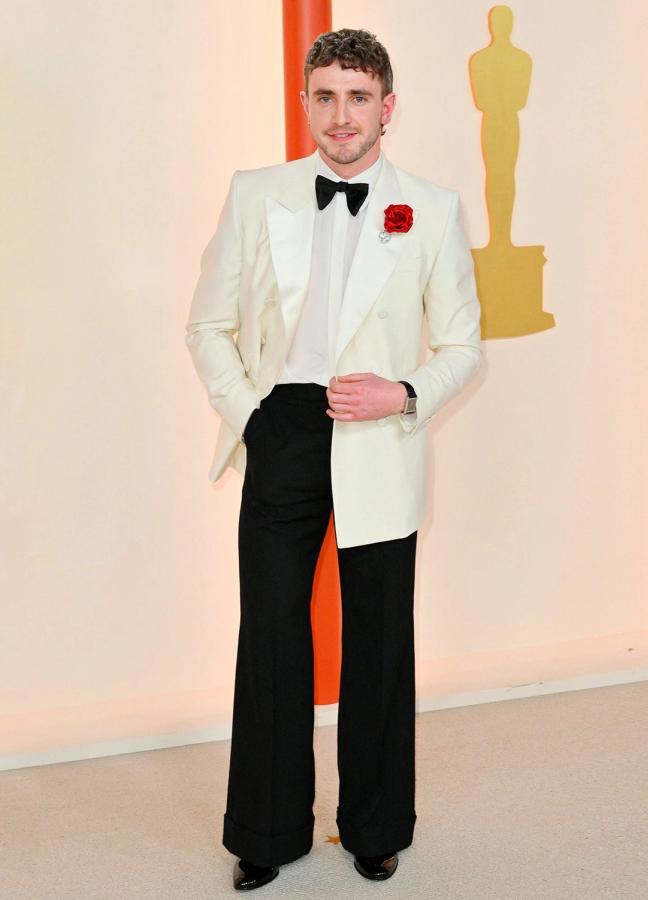 Paul Mescal is one of the most bankable actors of his generation given his successful run with Normal People, Aftersun, and his stage performance in A Streetcar Named Desire. He’s also been noted for his retro style – those shorts; his baggy 90s gear; the mullet – and his Oscars look was defined by his throwback, oversized proportions and the ivory hue of the Gucci jacket.