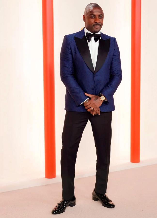 The forever-sharp Idris Elba proved the counter to the outdated rule that says black lowers can never be paired with a blue upper; in his case, the darkness of his trousers matches that of his lapels, allowing the vibrant-blue jacket to go a notch or two brighter than is usually the case on the red carpet.