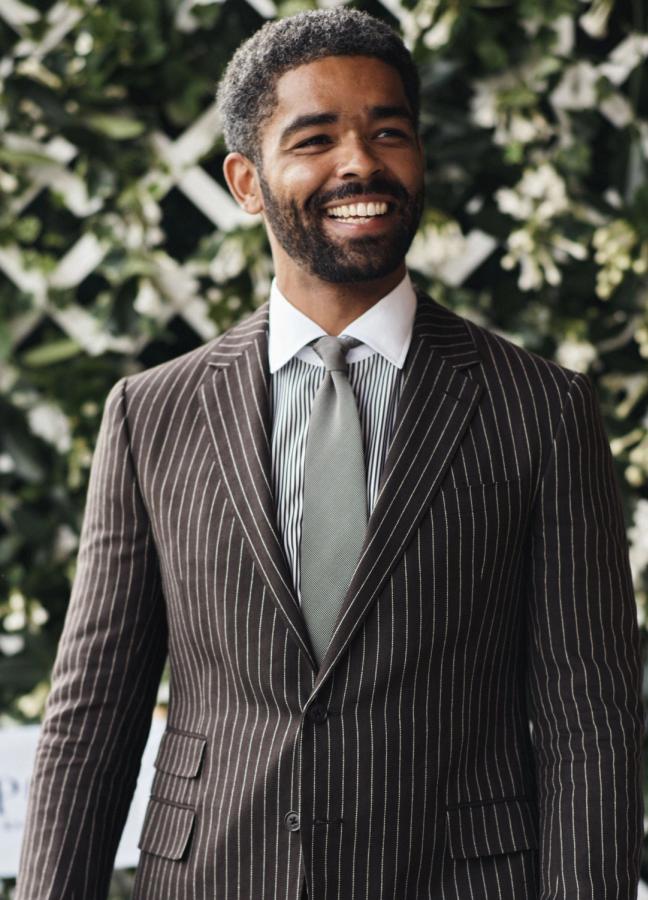 Take Kingsley Ben-Adir’s distinctly dapper look, for example: the Peaky Blinders star sported a Brown Linen Pinstripe Suit, paired with a brown and white Striped Cotton Shirt and a wool tie (all Ralph Lauren Purple Label). Elegance exemplified.