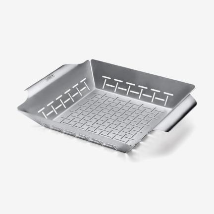 It’s probably a safe bet that you’re already in possession of a reliable pair of tongs – so, consider Kuchenprofi’s fish basket, a nifty piece of kit whose purpose is to prevent your turbot or John Dory from breaking up under the heat. A hard-working turner, for flipping burger patties, prodding blackened asparagus, checking the doneness of your chops, should have a slim bevel in order to slip under food with ease, and something made from a durable material, in order to hold up over burning charcoal, is preferable – OXO’s offering, in stainless steel, is the platonic ideal. In a world that’s slowly going meatless, a grilling basket by Weber, which is defined by its perpendicular incisions, is designed to swaddle summery vegetables and loamy potatoes over the heat source, preventing any slippage through your main grill grate.